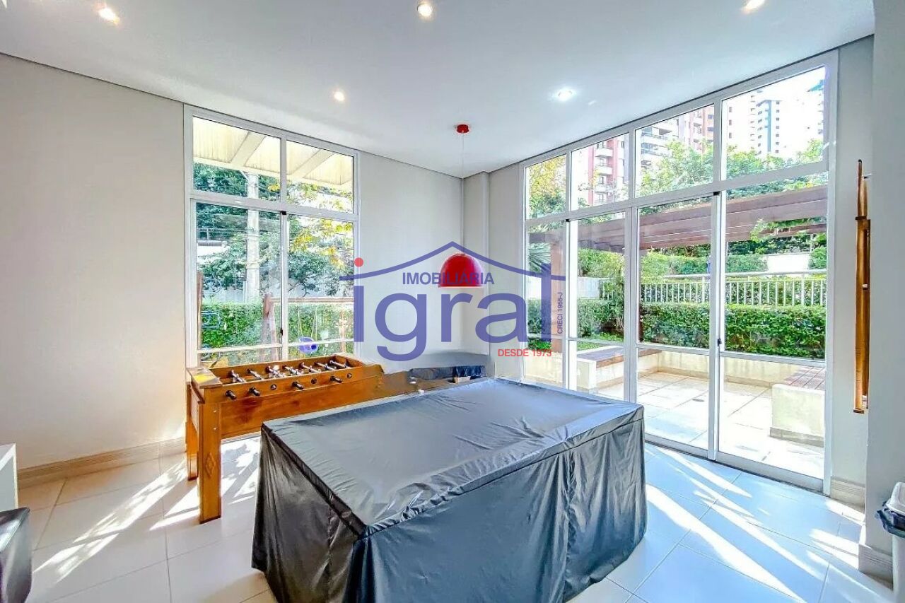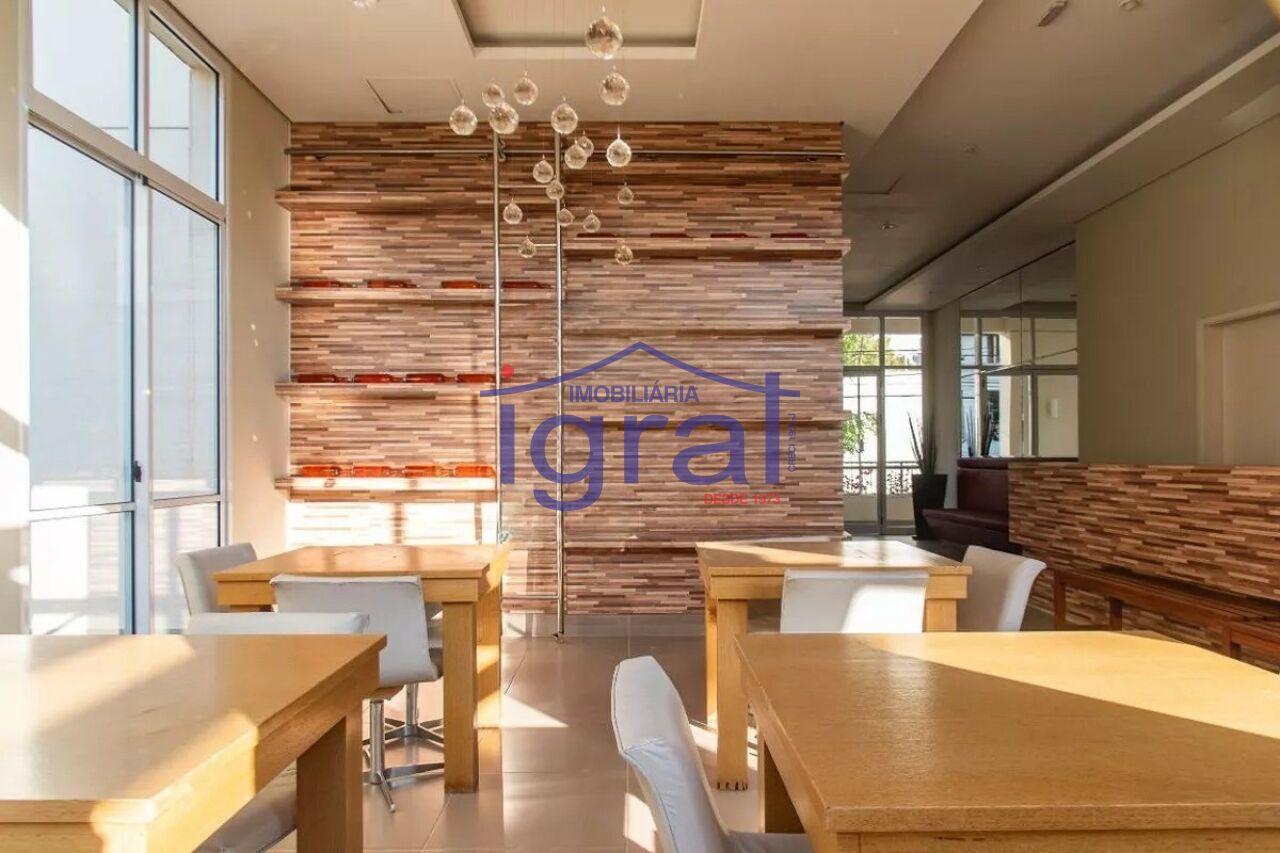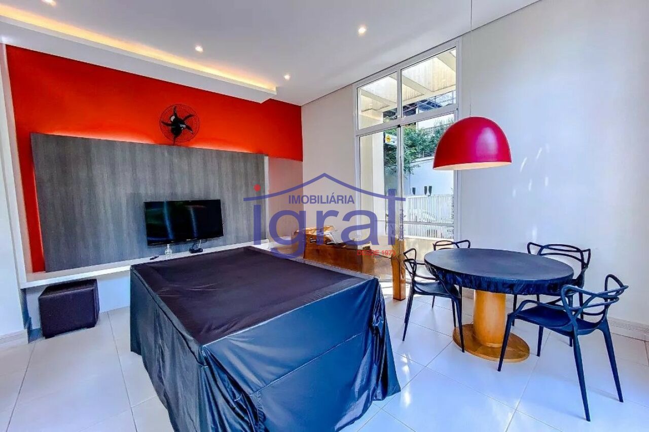 - Apartamento com 1 dormitório com armários, sala com ar condicionado, cozinha, banheiro social, área de serviço e 1 vaga de garagem.