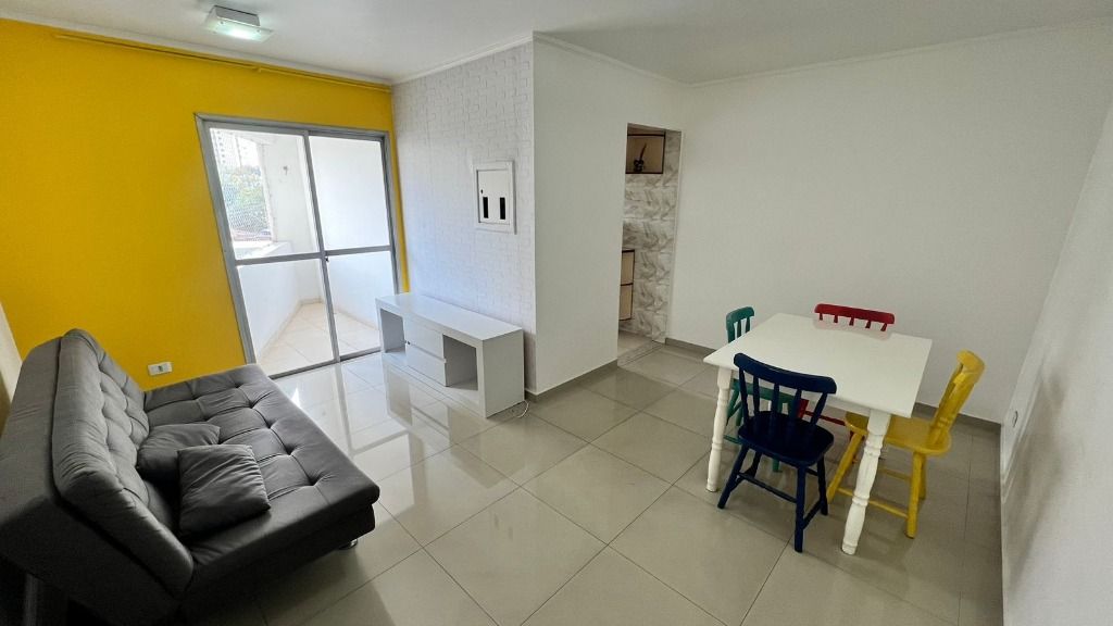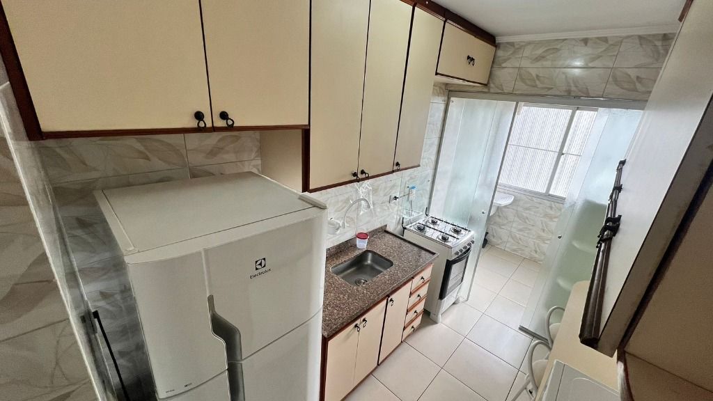 - Apartamento mobiliado com 2 dormitórios, sala com sacada, cozinha, banheiro social, área de serviço e 1 vaga na garagem.