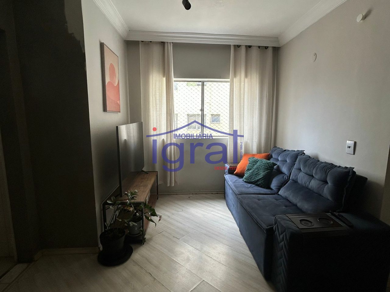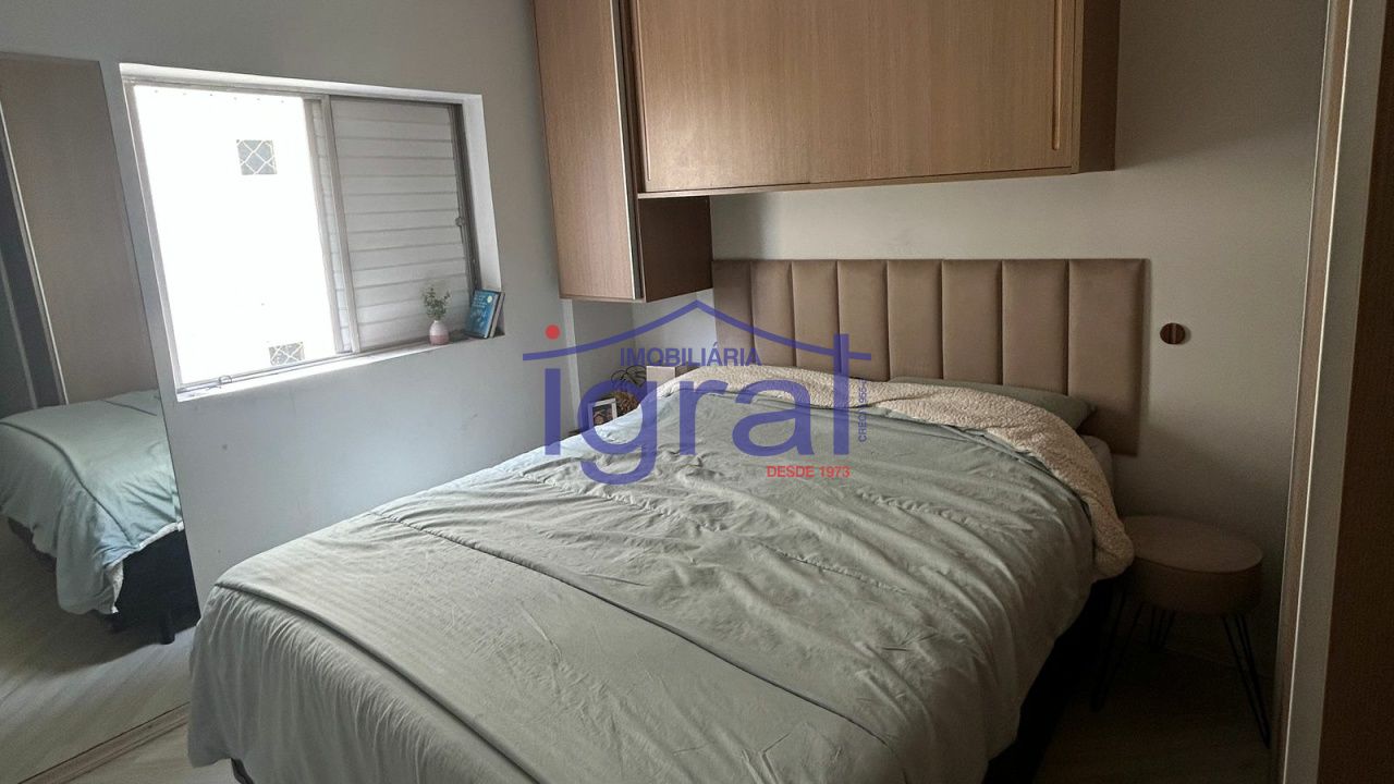 - Apartamento com 2 dormitórios, sala, cozinha, banheiro social, área de serviço com banheiro e 1 vaga de garagem.