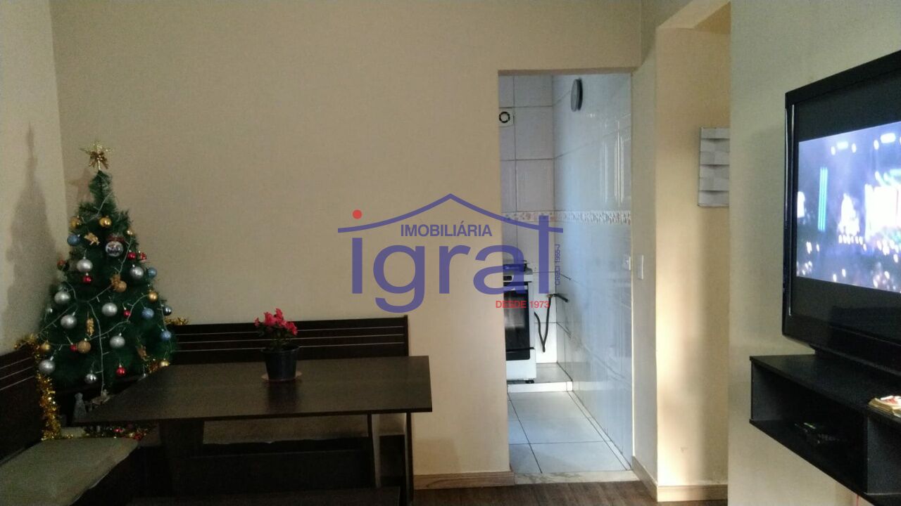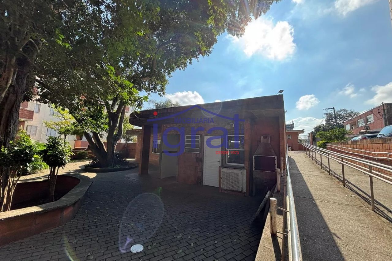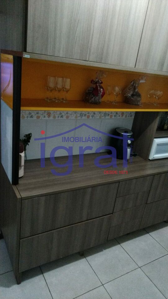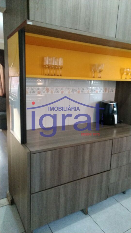 - Apartamento com 2 dormitórios, sala com sacada, cozinha, banheiro social e área de serviço.