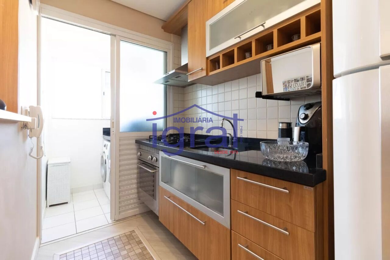 - Apartamento com 2 dormitórios, sala com sacada envidraçada, cozinha com armários planejados, cooktop e forno elétrico, banheiro social com box, área de serviço e 1 vaga de garagem.