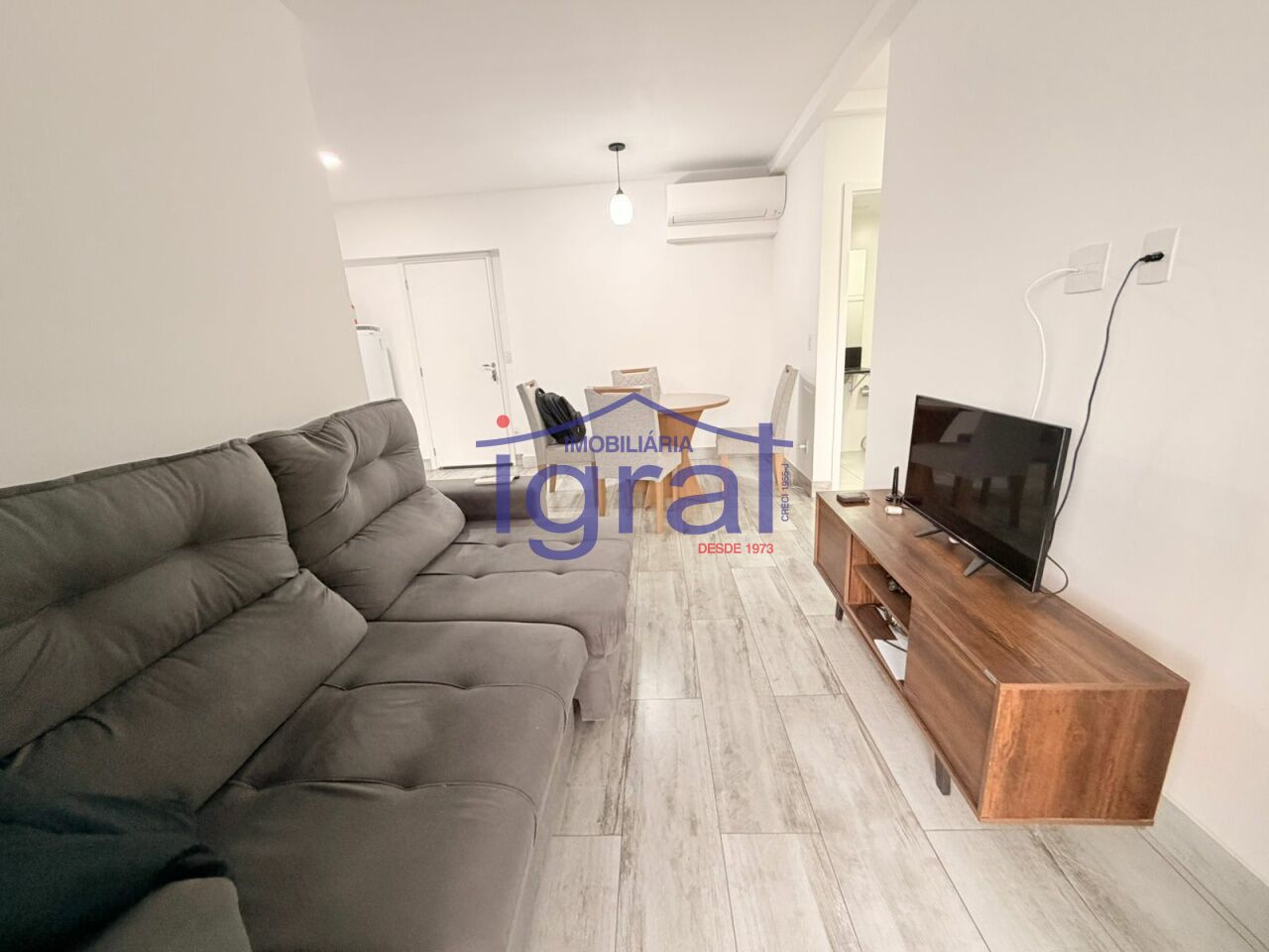 - Apartamento mobiliado com 2 dormitórios, sala ampla com varanda, cozinha, banheiro social, área de serviço e 1 vaga de garagem.