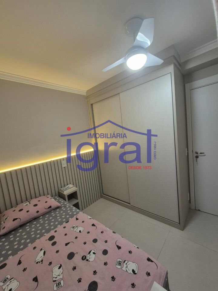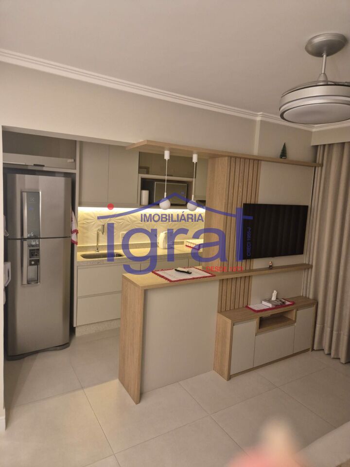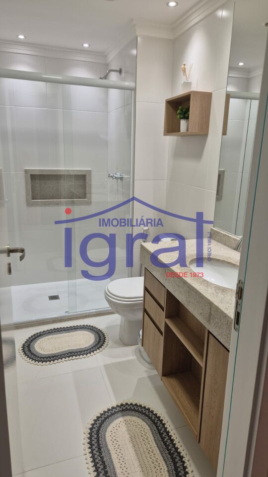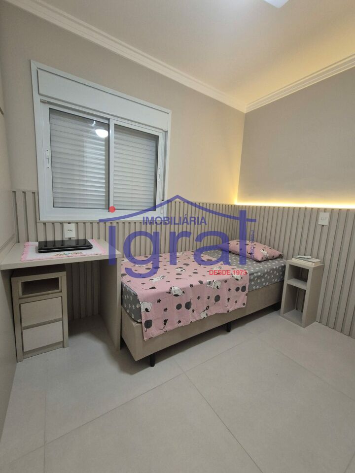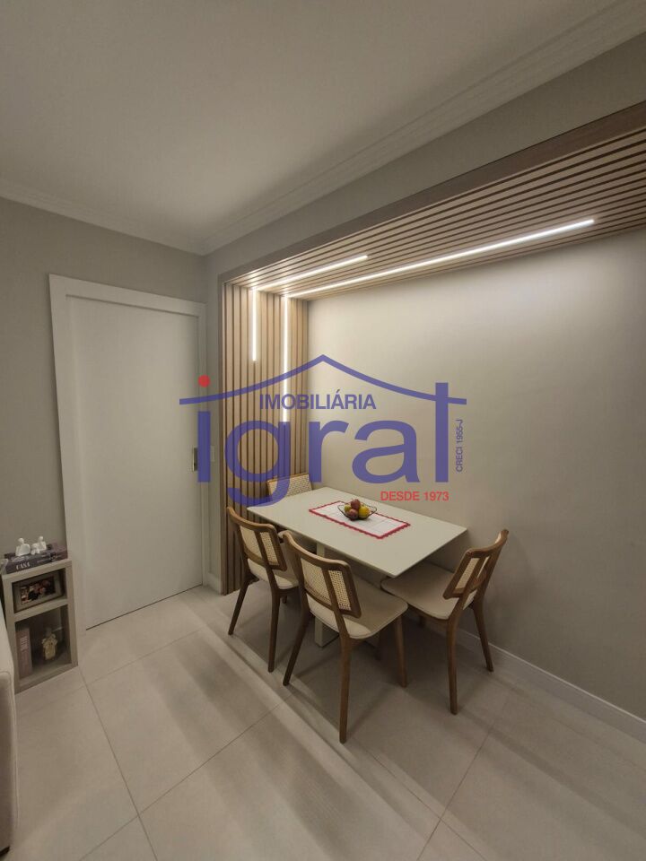 - Apartamento com 2 dormitórios, sendo 1 suíte, sala ampla, cozinha com armários, banheiro social, área de serviço e 1 vaga de garagem.