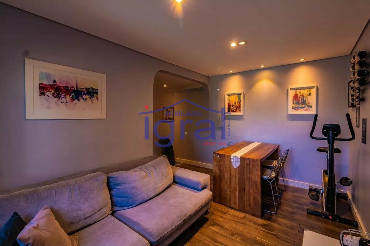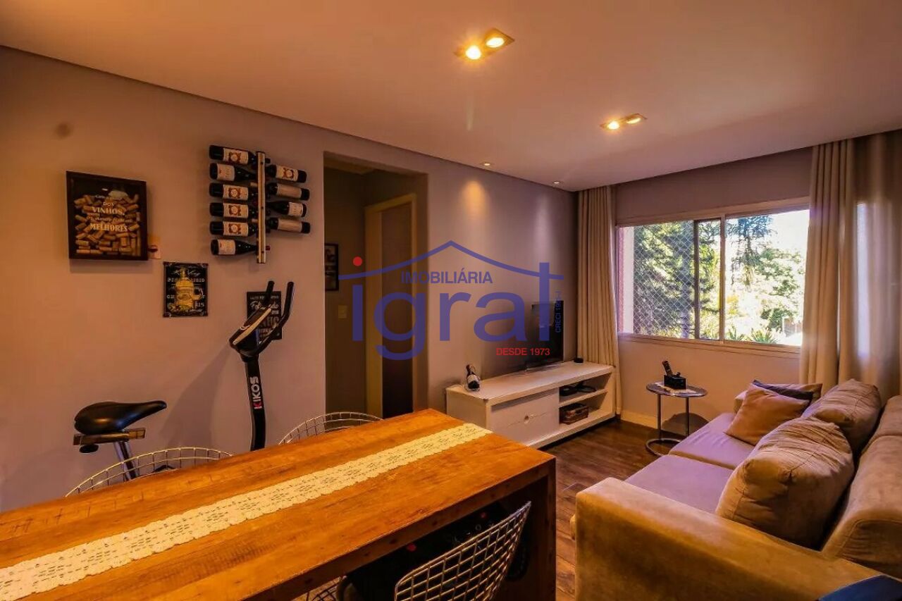 - Apartamento com 2 dormitórios, sendo 1 suíte, sala para 2 ambientes com sacada, cozinha com armários, banheiro social, área de serviço e 1 vaga de garagem.