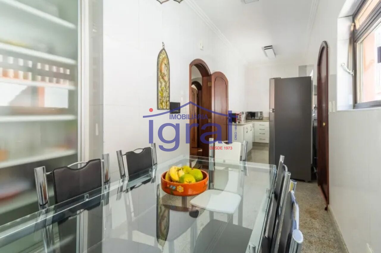 - Casa com 3 dormitórios, sendo 1 suíte, sala para 3 ambientes, sala de tv, cozinha com armários, 1 dormitório com banheiro para hospedes, salão de festas, quintal com piscina, varanda, lavanderia, dependência de empregada com banheiro e aproximadamente 5 vagas de garagem com portão eletrônico.