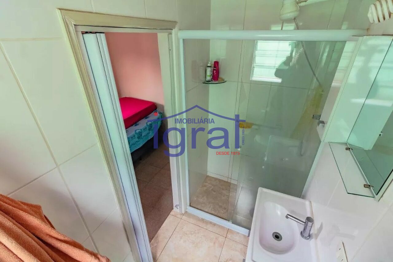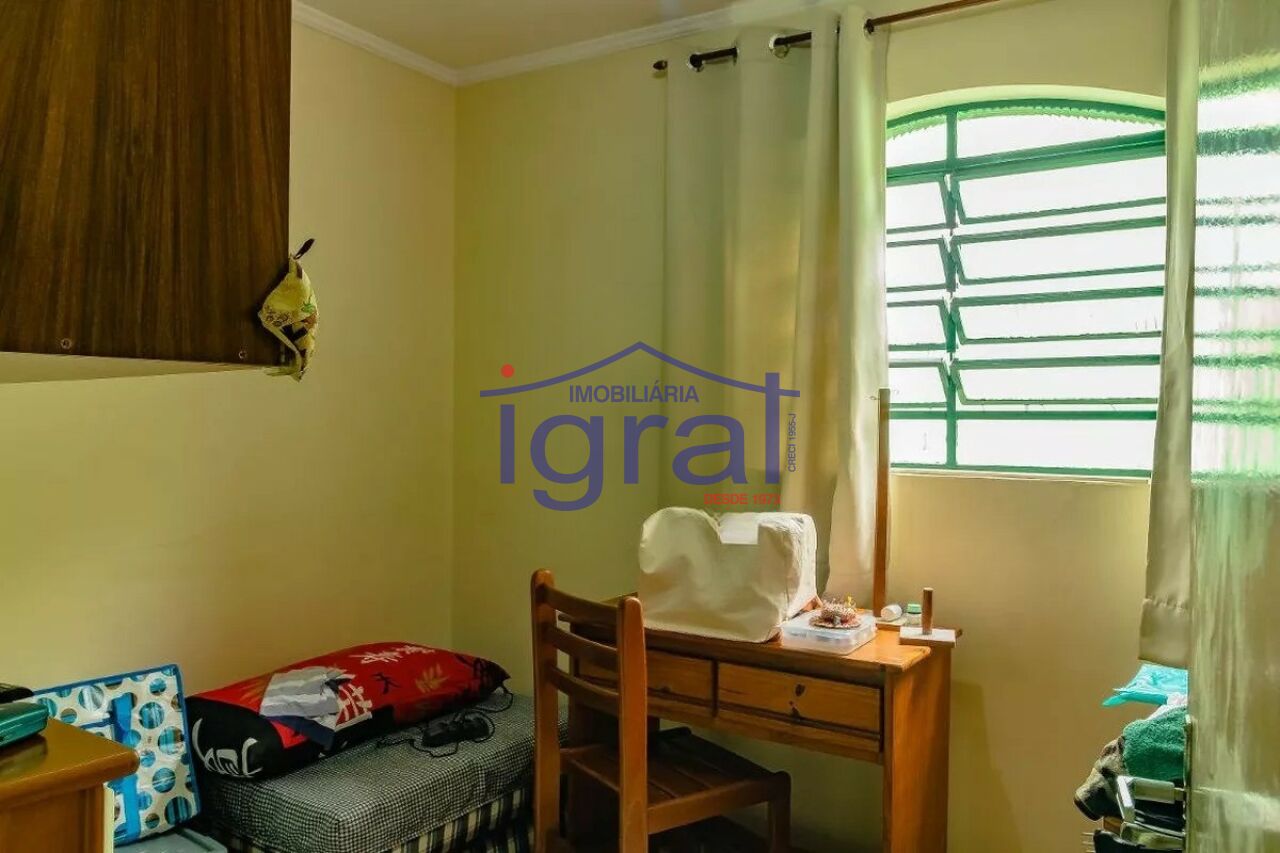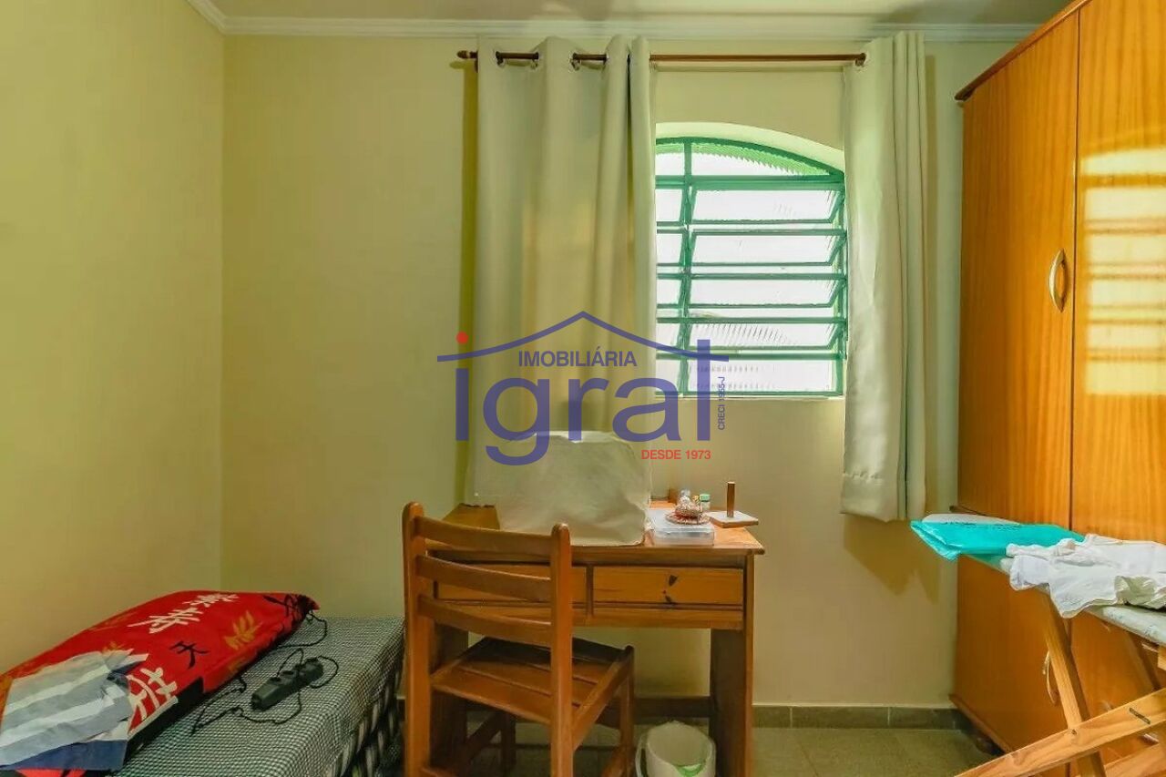 - Sobrado com 3 dormitórios, sendo 1 suíte, sala para 2 ambientes, copa, cozinha com armário, banheiro, quintal, edícula com 1 dormitório e banheiro e 2 vagas de garagem com portão automático.