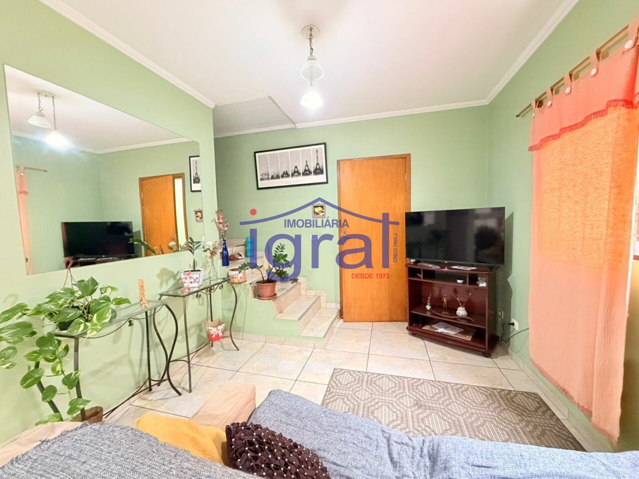- Cima: 2 dormitórios, sala, cozinha, 2 banheiros e lavanderia.